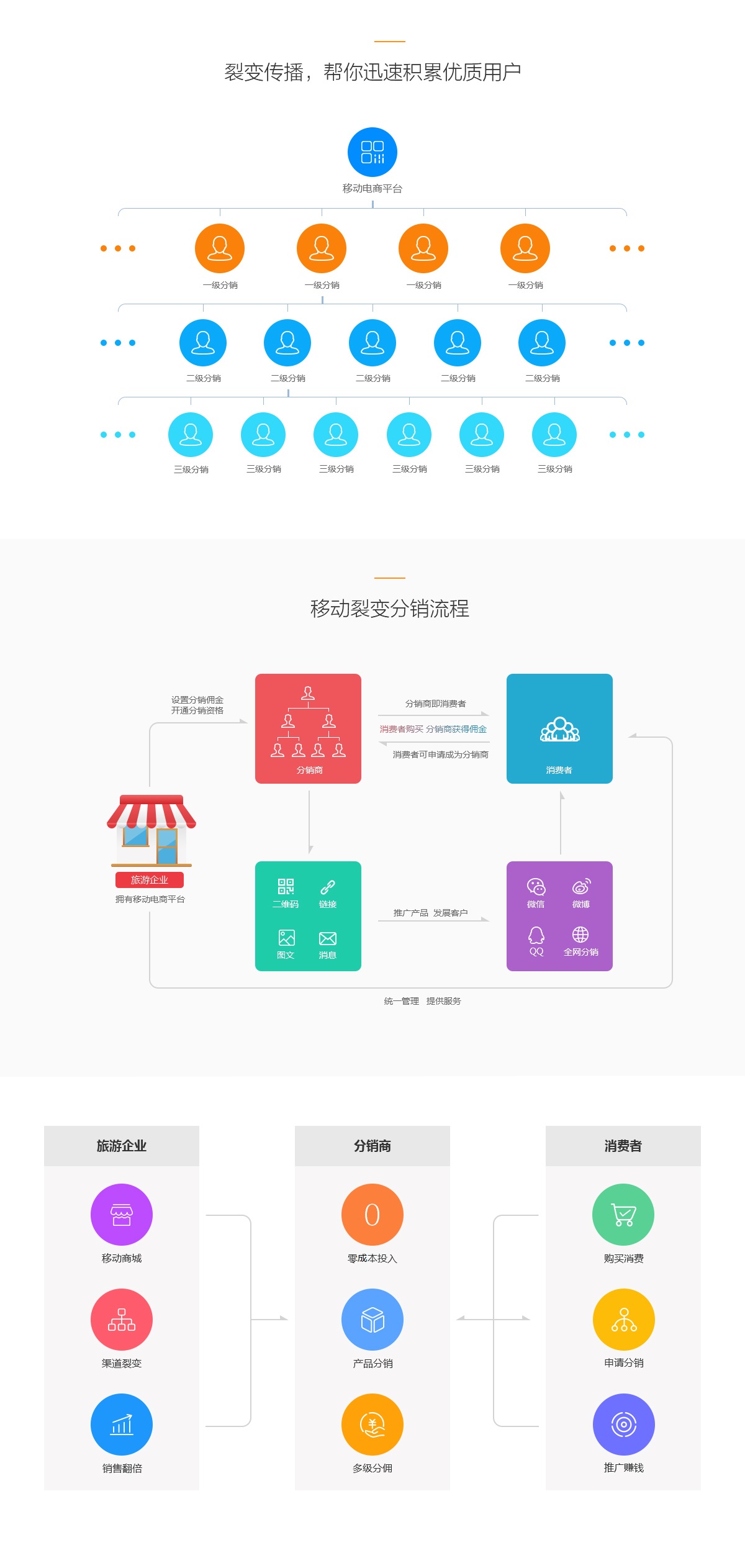 移動裂變分銷是一種幫助旅游企業(yè)通過移動電商平臺,快速建立銷售渠道,來積累活躍用戶和提高經(jīng)營收入的高效解決方案。