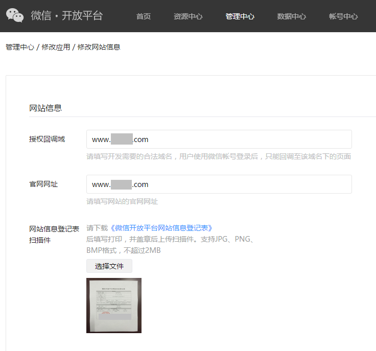 將獲得的key和secret填寫在網(wǎng)站第三方登陸位置