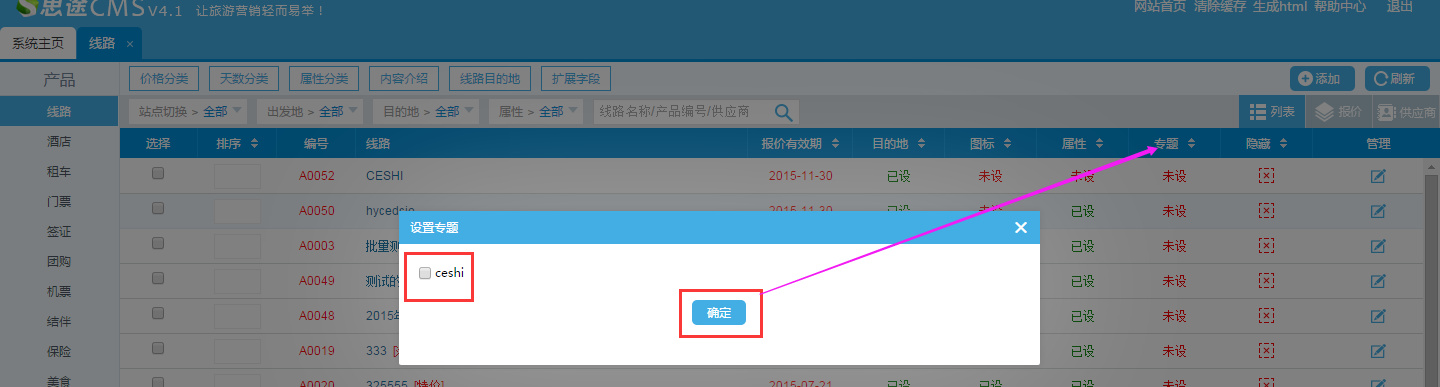 點(diǎn)擊保存按鈕生成專題,在后臺(tái)點(diǎn)擊專題跳轉(zhuǎn)到前臺(tái),獲得專題鏈接