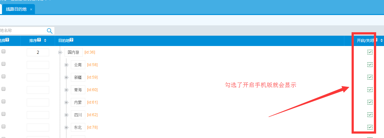 后臺(tái)首頁(yè)》分類設(shè)置》線路分類》線路目的地
