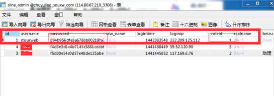 2、雙擊打開sline_admin表,在表中找到字段roleid值為1的數(shù)據(jù)記錄