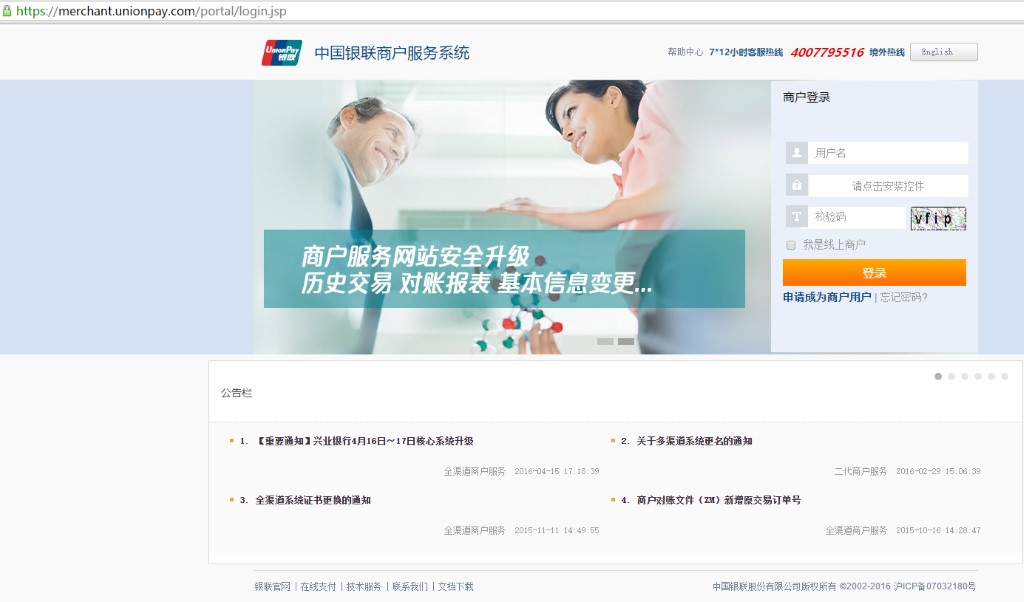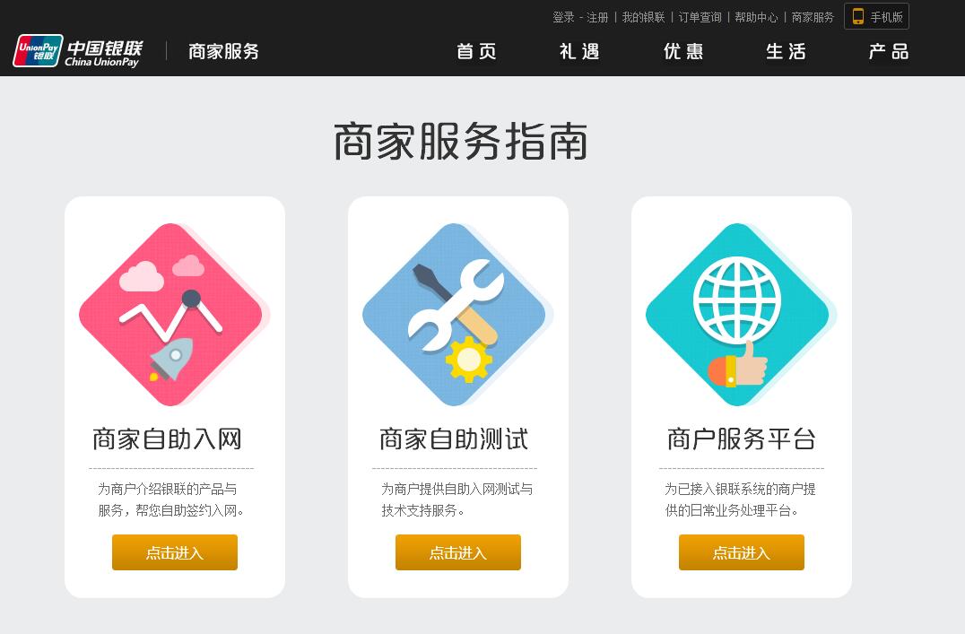 中國銀聯商家服務中心(https://static.95516.com/static/merchant/service/index.html)