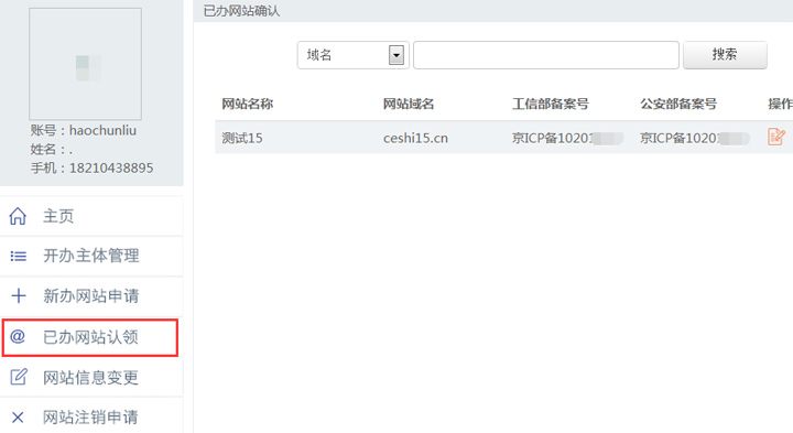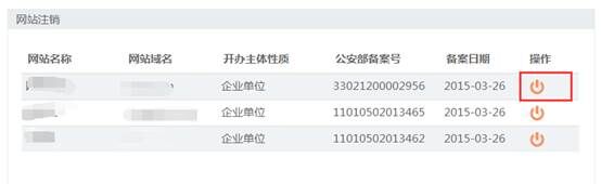 登錄網站,點擊首頁左側菜單【網站注銷申請】選擇要注銷的網站 點擊注銷小圖標