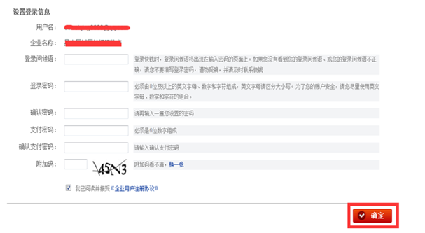 3、補充賬戶密碼、登錄問候語及相關信息,點擊確認,完成激活。
