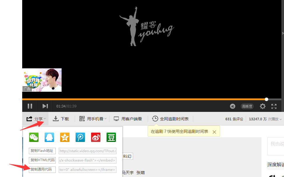 首先:將需要展示的視頻,上傳到騰訊視頻或愛奇藝第三方視頻網(wǎng)站平臺