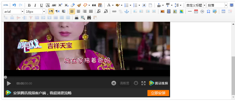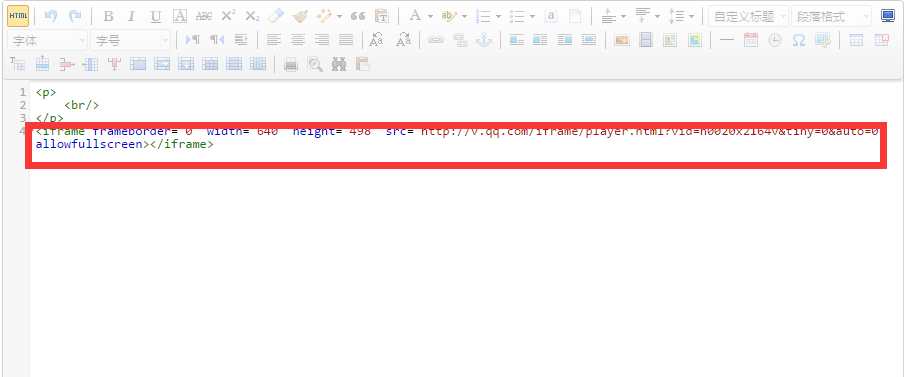 將獲取的地址復制粘貼在后臺編輯器插入視頻的位置