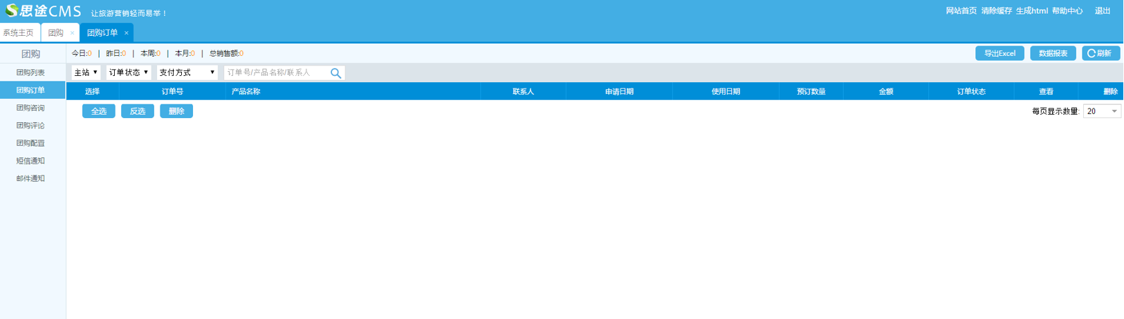 團購訂單列表是針對團購產品訂單進行查看管理的,可以通過該列表查看團購訂單的狀態,并進行訂單管理操作。