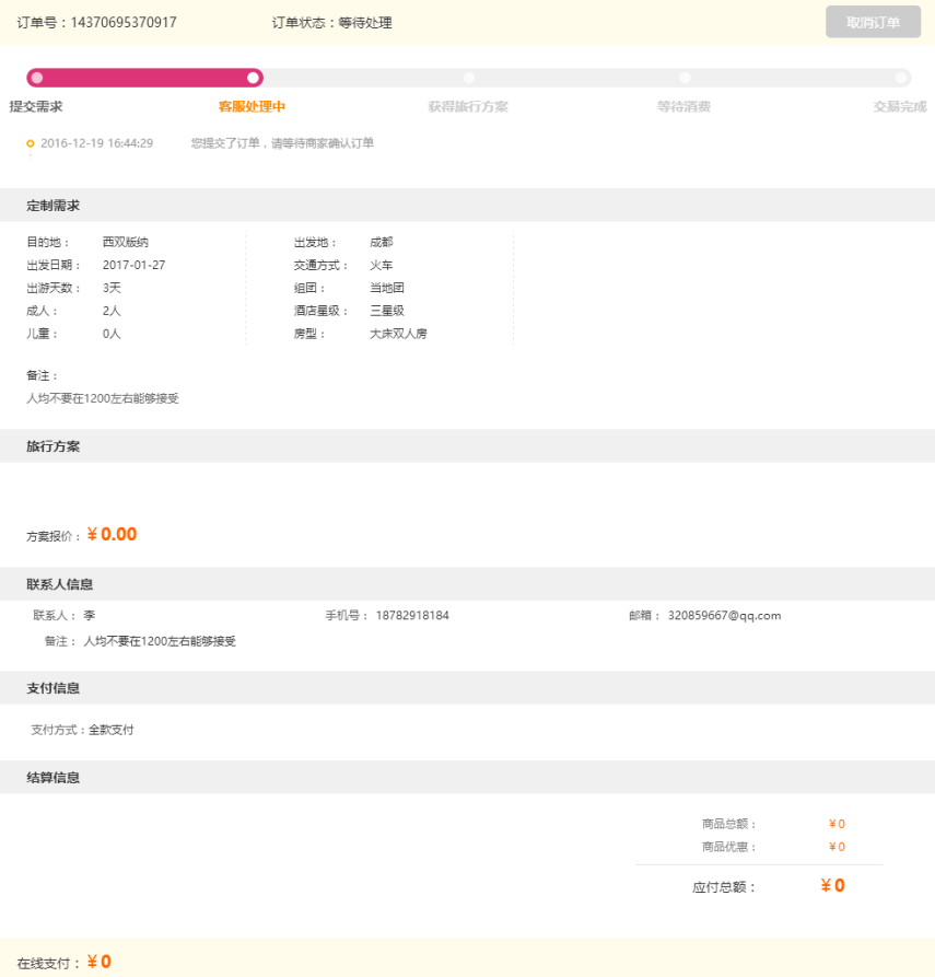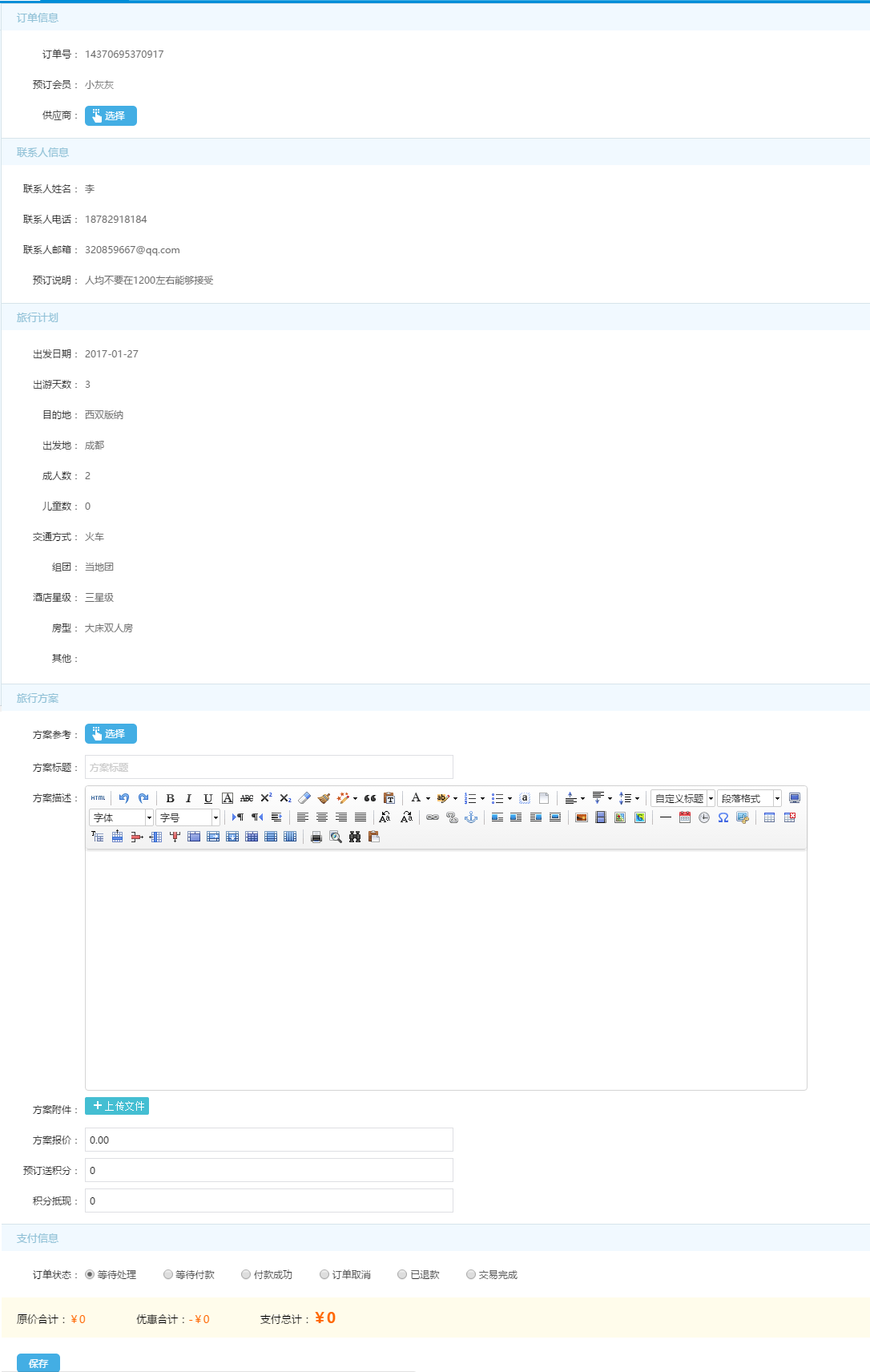 2、旅行計劃:包括目的地、出發地、出發日期、天數、人數和屬性