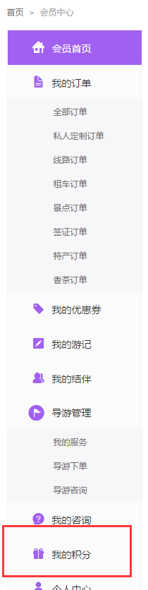 4、會員積分:顯示當前可用積分,即獲得的所有積分-已抵扣的積分