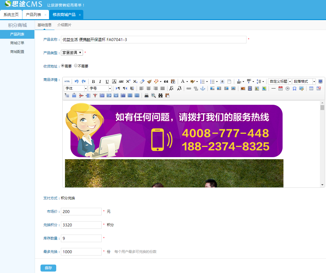 (1)市場價:所添加產品原有價格,用于產品詳情頁的顯示