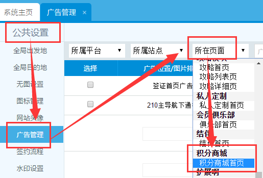 3、積分商城頁面的廣告位添加在公共設置--->廣告管理--->積分商城首頁:添加廣告