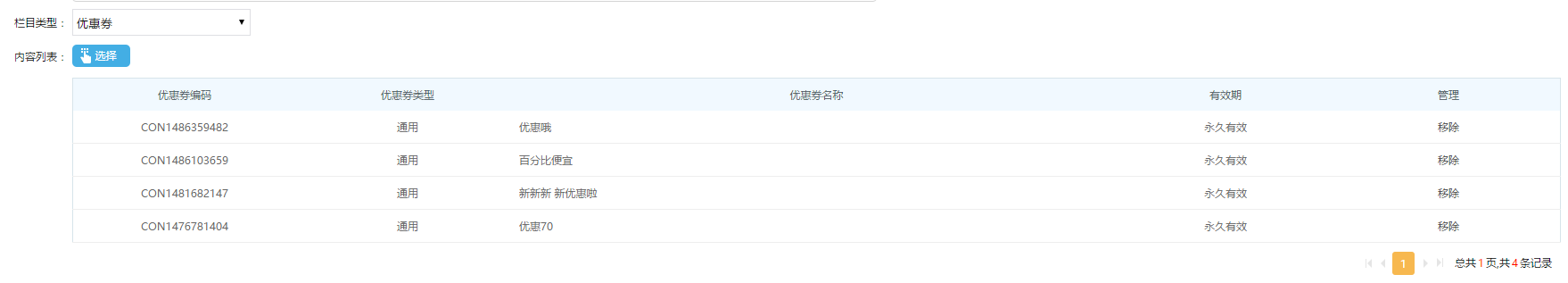 A、選擇優惠券的欄目類型:編輯欄目名稱和欄目介紹、設置排序