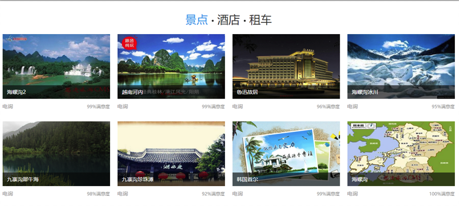 此版塊只展示景點、酒店、租車3個板塊,不可更改,產(chǎn)品排序按后臺的數(shù)字排序從小到大展示前8個開啟狀態(tài)的產(chǎn)品: