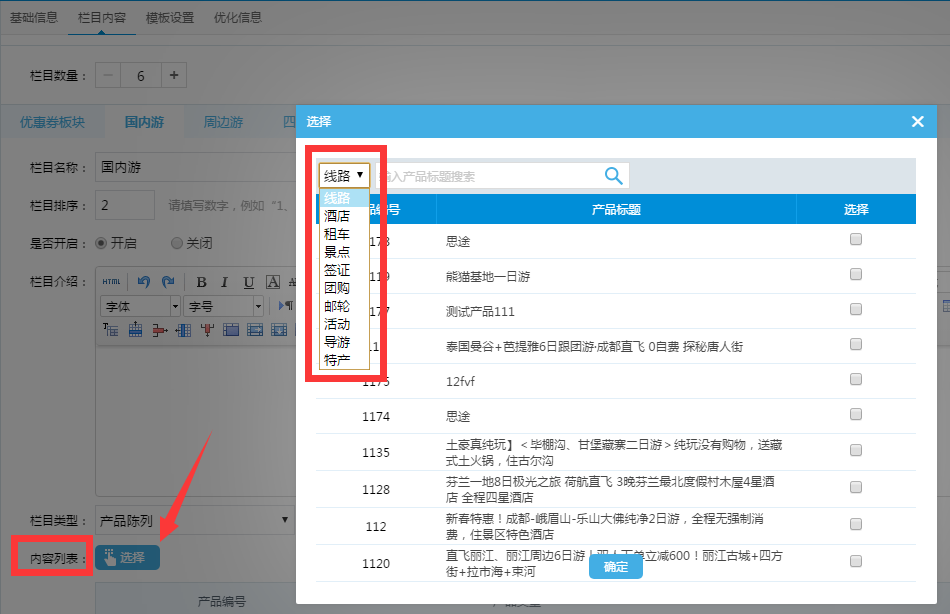 然后欄目?jī)?nèi)容中的內(nèi)容列表點(diǎn)擊選擇