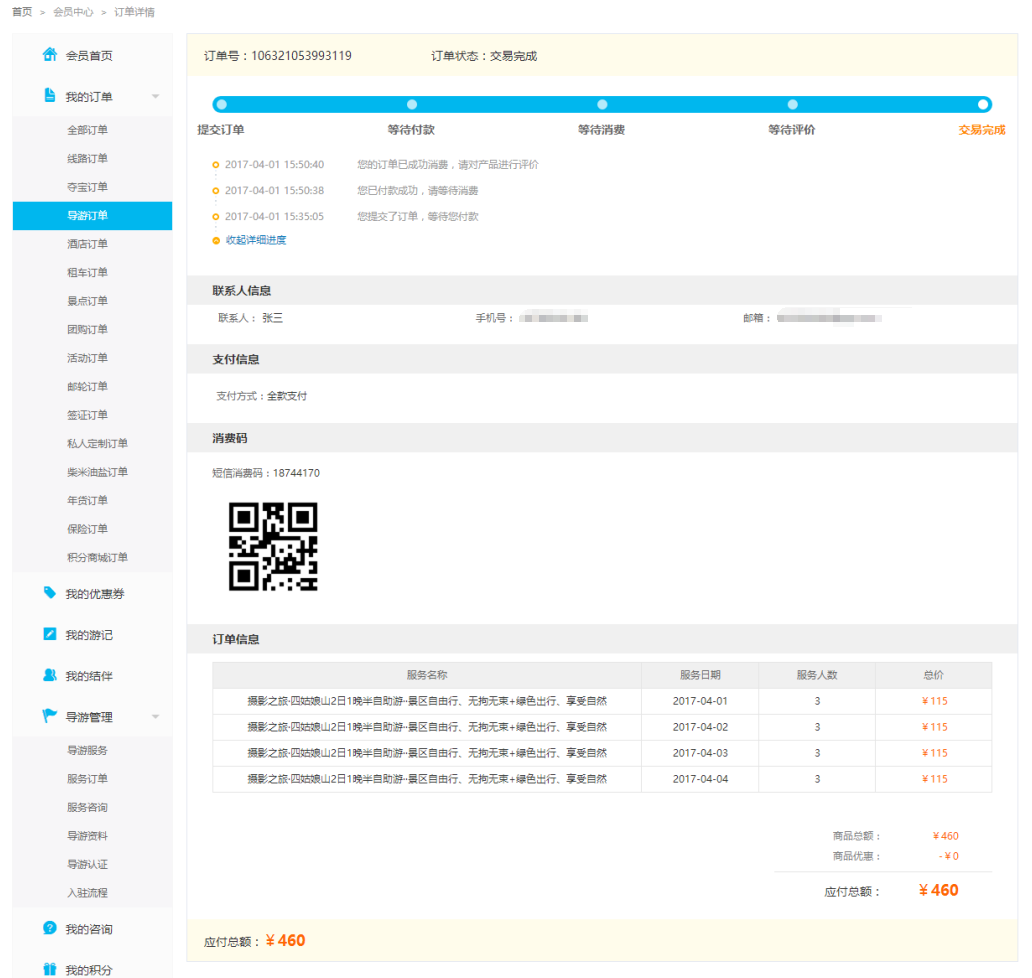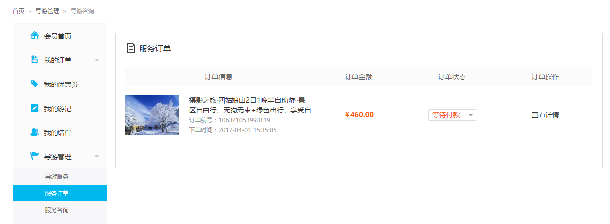 PS:上架后前臺(tái)可以看見(jiàn)該導(dǎo)游服務(wù)產(chǎn)品