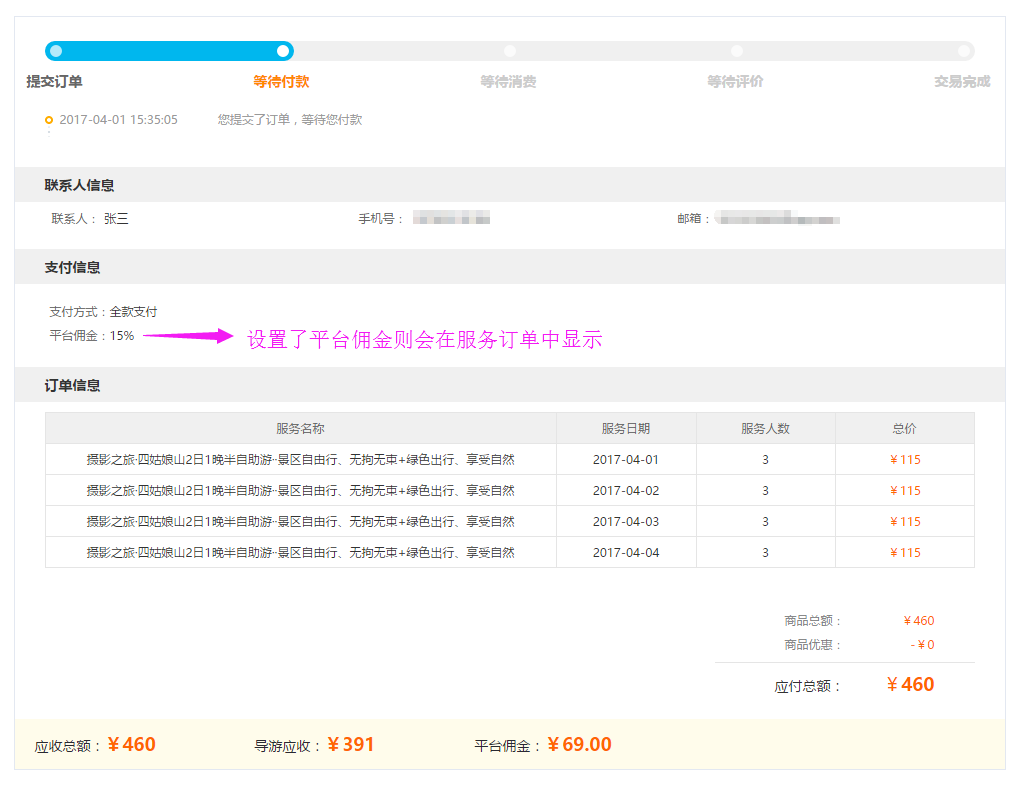 6、平臺(tái)傭金:導(dǎo)游服務(wù)產(chǎn)品銷(xiāo)售后,平臺(tái)的傭金
