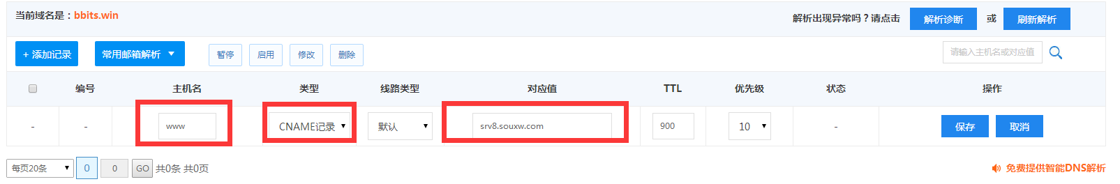 (一)使用思途的服務(wù)器,在解析的時候類型需要選擇CNAME類型。記錄值填寫思途售后人員發(fā)的地址