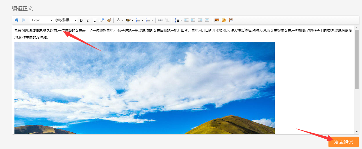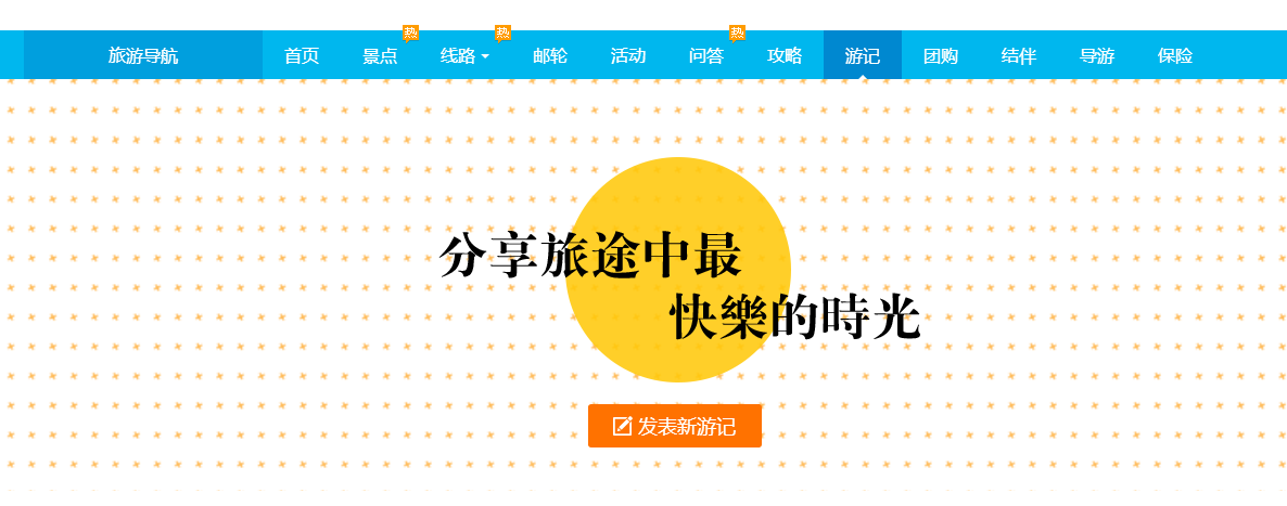 在前臺(tái),點(diǎn)擊主導(dǎo)航游記導(dǎo)航欄目進(jìn)入游記頁(yè)面發(fā)布游記內(nèi)容