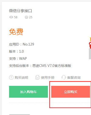 1.1在應(yīng)用商城購(gòu)買http://www.ywiv.cn/app/129.html,微信分享接口應(yīng)用。