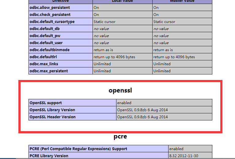 開(kāi)啟openssl 后使用phpinfo()會(huì)顯示這個(gè)部分: