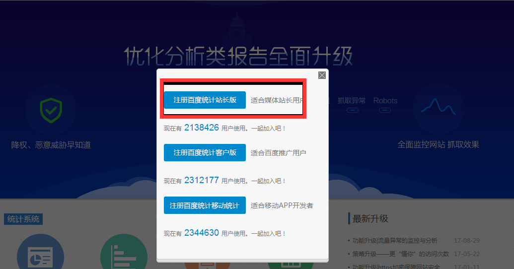 選擇注冊百度統計站長版。