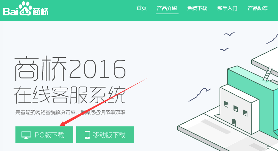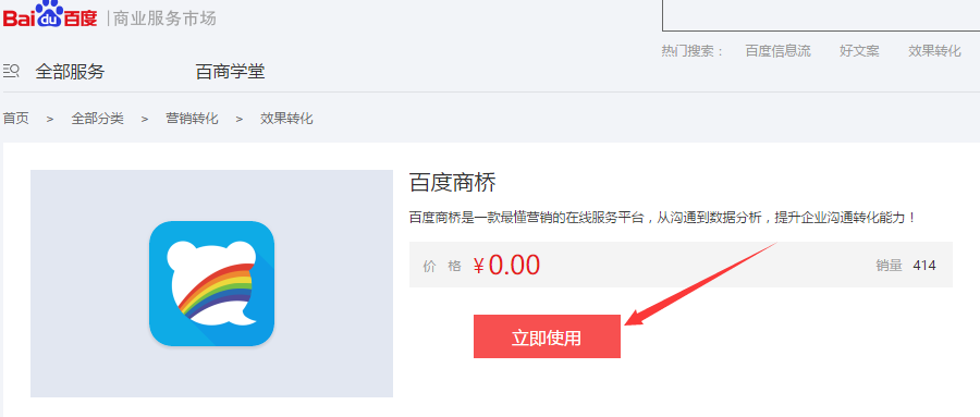 點(diǎn)擊“立即使用”后將自動(dòng)連接到百度商橋官網(wǎng)http://qiao.baidu.com/home/index.html,請(qǐng)點(diǎn)擊“立即下載”,下載百度商橋客戶端: