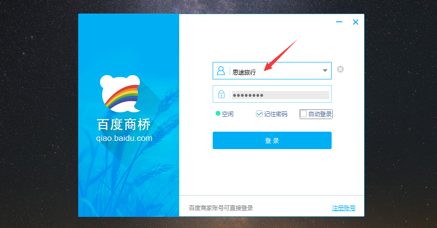 注意:此處的賬號(hào)密碼就是剛才我們?cè)诎俣雀?jìng)價(jià)推廣平臺(tái)注冊(cè)的賬號(hào)密碼: