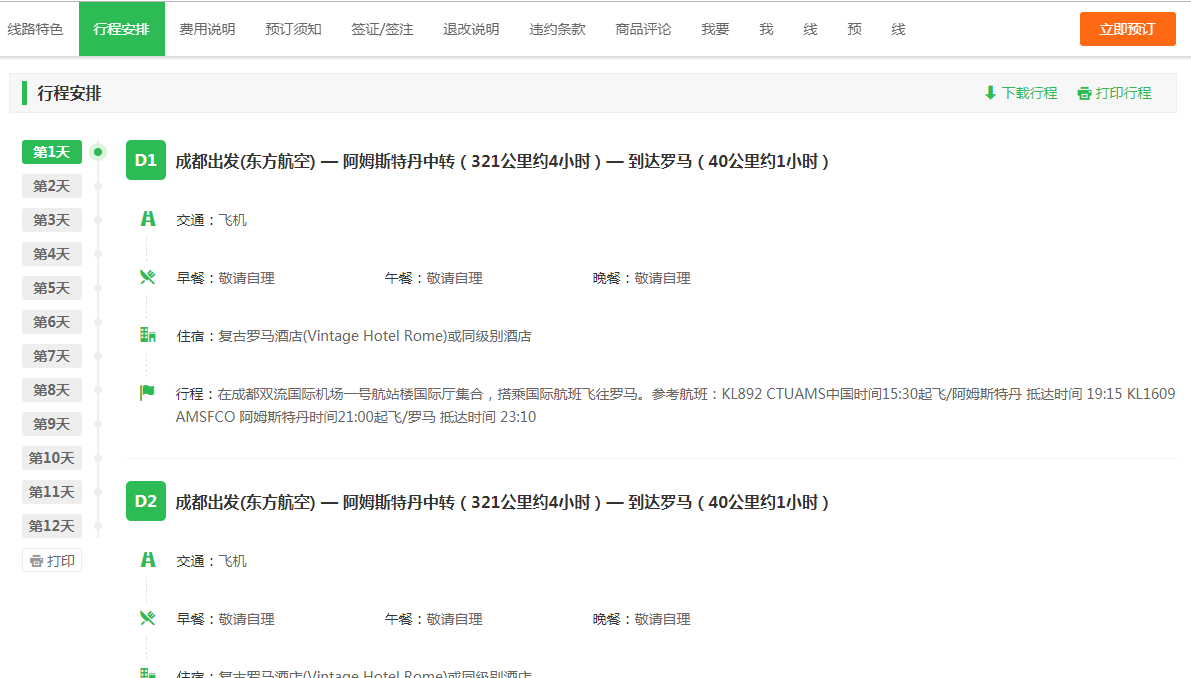 另外,對于行程安排部分,思途還新增了頁面樓層定位菜單,游客可以隨時跳轉至具體的某一天查看行程安排。便于游客在瀏覽長途游產品時,更加清晰的掌握行程情況。