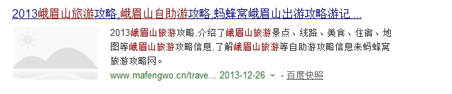 首頁的描述非常重要,這是直接影響到搜索引擎排名前后的問題之一,在搜索結(jié)果當(dāng)中,不僅首頁關(guān)鍵詞會出現(xiàn)飄紅的現(xiàn)象,首頁的描述同樣會有飄紅的現(xiàn)象發(fā)生,通過本人細(xì)心的觀察,排名在搜索引擎首頁的關(guān)鍵詞描述飄紅的次數(shù)一般都是在3次左右。如圖所示: