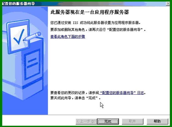 之后點擊下一步,出現附加組件的選擇,一個是FrontPage Server Extentions,另外一個是ASP.net,這兩項我們的環境中都不需要,不必選擇,如果有需要,可以選擇性安裝。進入下一步,是選項總結,再下一步,進入安裝過程,此時提示需要插入windows 2003(R2)的安裝光盤,插入光盤后,選擇光驅所在驅動器下的I386,點擊確定,安裝過程將會繼續一直到結束,并且出現成功提示(如圖所示)