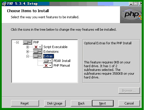 下一步需要配置安裝選項,這里我們除了默認的選項之外增加了pear install(如圖所示)