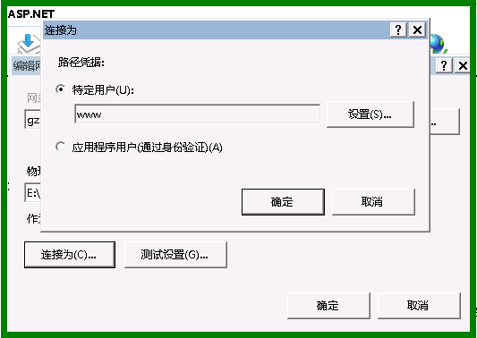 添加好網站后,需要為網站設置用戶訪問權限。在iis管理器左邊的網站列表中選中網站,在右邊的操作列表中點擊“基本設置”,在彈出窗口中點擊“連接為”,彈出的窗口中會出現網站的默認用戶賬戶,也可以更改為其它的用戶。確定網站的用戶賬戶后,將此賬戶的訪問權限設置到網站的根目錄文件夾上(如圖所示)