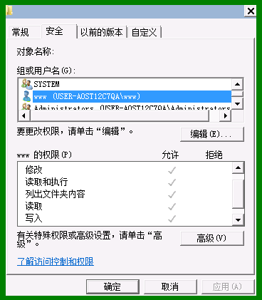 l 網站的目錄最好獨立到一個磁盤中,新建一個為網站匿名訪問而獨立授權的賬戶,讓此賬戶可以訪問和編輯此目錄,移除其它不必要的賬戶對此目錄的訪問權限,能有效防止網站被入侵后從而涉及到整個系統被控制