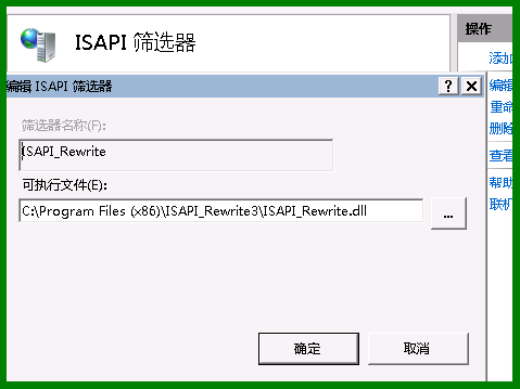 isapi_urlwriter ISAPI擴展組件主要用來做地址重寫,重寫后的虛擬靜態地址對搜索引擎更友好。先將ISAPI_Rewrite3安裝包解壓到指定的文件目錄中,然后雙擊iis的ISAPI篩選器配置項,進入網站ISAPI組件配置窗口,點擊添加按鈕,在彈出的窗口中選擇ISAPI_Rewrite3解壓目錄中的ISAPI_Rewrite.dll文件為可執行文件并確定。(如圖所示)