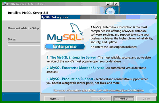 下載mysql(http://www.mysql.com),安裝過程比較簡單,首先配置路徑,然后選擇安裝選項,一般采用默認安裝的方式,之后會進入一個配置向導界面(如圖所示)
