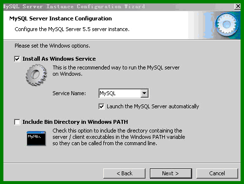 進入下一步,需要設定windows選項,這里推薦安裝windows服務,并且自動啟動。第二個選項,如果有必要,可以選擇添加一個環境變量,可以方便命令行指向。(如圖所示)