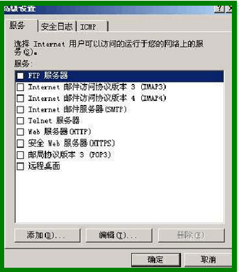 3) 點擊“設置(G)...”按鈕可進行高級設置。其中列出了可用的網絡服務,選中后允許其打開網絡端口并通信,反之則關閉其網絡通信;單擊“添加”則可以增加網絡服務或打開指定的網絡端口