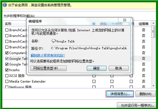 雖然在安裝網絡服務的過程中,防火墻會提示你有網絡端口正在打開,是否允許通過防火墻,但有些管理員沒有細心看提示,直接就同意了,造成了大量沒有必要打開的網絡端口被打開了,特別是一些木馬或惡意軟件會混水摸魚,偽裝提示信息來誘騙管理員打開網絡端口,造成大量的安全隱患。進入防火墻配置界面,選擇相應的端口或網絡服務,點擊“詳細信息”則可以看到此項應用的詳細信息,根據這些信息來判斷其是否應該開啟這個端口。