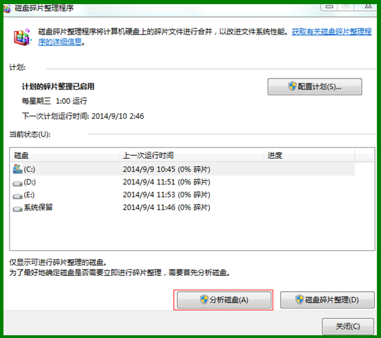 9. 定期檢查磁盤狀態并進行碎片整理,隨著系統運行時間的增長,特別是大量的IO操作后,磁盤上會產生大量的文件碎片,這些碎片過多則會嚴重影響服務器性能,所以定期(建議一個月)進行磁盤碎片檢查,如果系統提醒需要進行碎片整理,則進行整理。