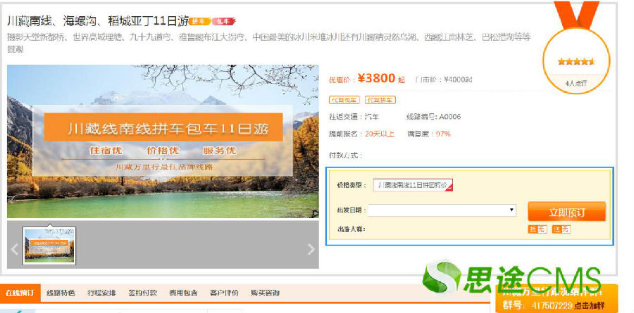 比如在購物的時候我們會發(fā)現(xiàn),不管是將購物車放在頁面頂部還是在邊欄設(shè)置預(yù)訂模塊,他們最終都是希望確保在客戶決定購買時能及時響應(yīng),最后得到一個結(jié)果。站長肯定都不希望用戶瀏覽網(wǎng)站之后就離開了,所以當(dāng)用戶想要購買時,能夠很快找到預(yù)訂窗口,這方便思途就做的很好,不管線路頁面還是租車頁面,用戶都能很方便的找到預(yù)訂窗口。
