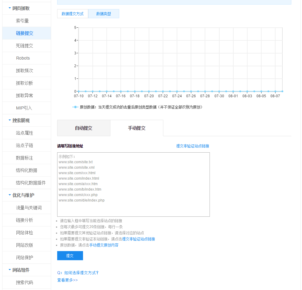 2. 選擇站長后臺左側“鏈接提交”,點擊“手動提交”